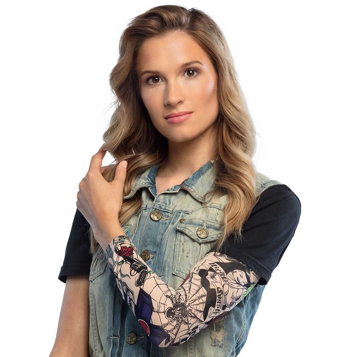 Perfekt för maskerader, temafester eller som en rolig pryl på kalas, där du snabbt vill imponera och underhålla. Denna tatuering sleeve är tillverkad för att se ut och kännas som en äkta tatuering, med en bekväm passform som enkelt dras över armen.