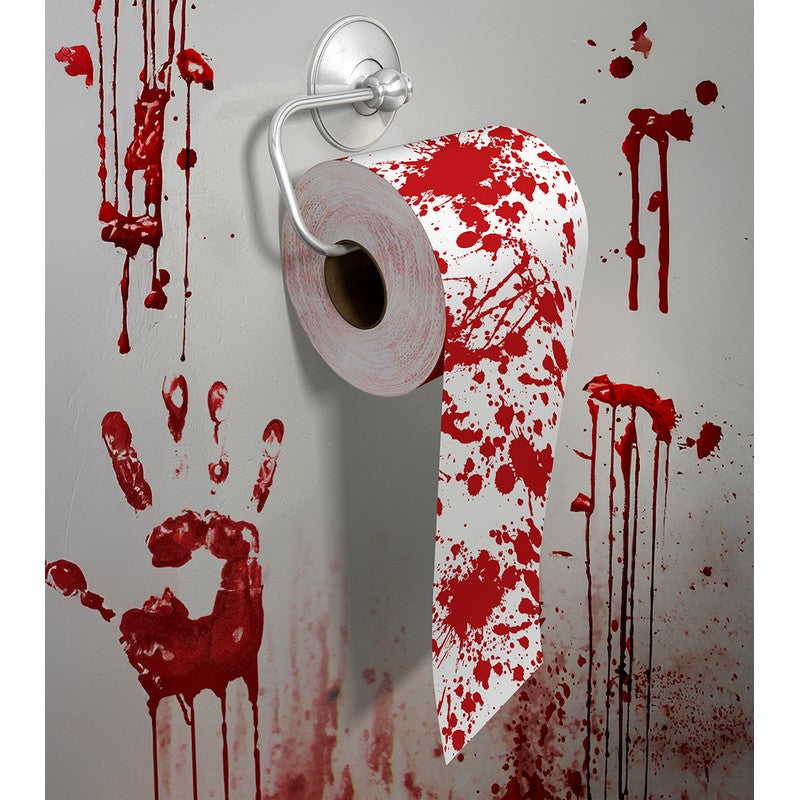 Sätt skräck i dina gäster med detta blodstänkta toalettpapper som ser ut att komma direkt från en rysare. Den vita rullen är täckt av realistiska röda blodstänk och blir en kuslig överraskning i badrummet. Perfekt till Halloween, temafester eller för dig som älskar makabra dekorationer som får folk att tappa hakan. Toalettpappret fungerar både som en rolig dekoration och som en unik present till skräckälskaren som har allt. Kombinera gärna med fejkblod, blodiga handavtryck och andra dekorationer för att skapa en ännu mer intensiv skräckstämning.