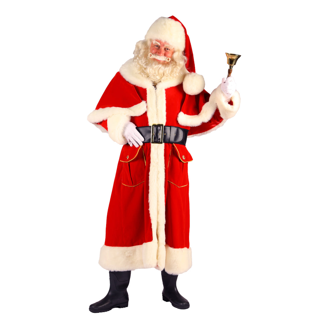 Steg in i rollen som den äkta jultomten med denna exklusiva tomtedräkt i hög kvalitet. Dräkten har en lång, djupröd tomterock, rikligt dekorerad med mjuk vit fuskpäls längs krage, front, ärmslut och nederkant. Den traditionella designen ger ett professionellt och majestätiskt tomteutseende som passar perfekt för event, julfiranden och fotosessioner.