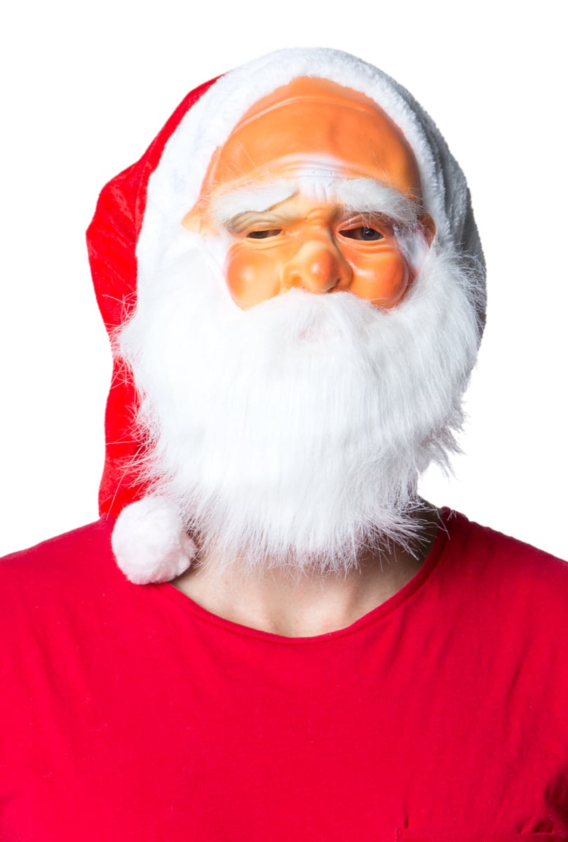 En tomtemask i flockad gummi med skägg, luva och ögonbryn. En tomtemask för den som vill vara riktigt anonym i sin utklädnad som tomtefar. Med den heltäckande masken blir du Tomten på riktigt, det är bara tomtekläderna som fattas.