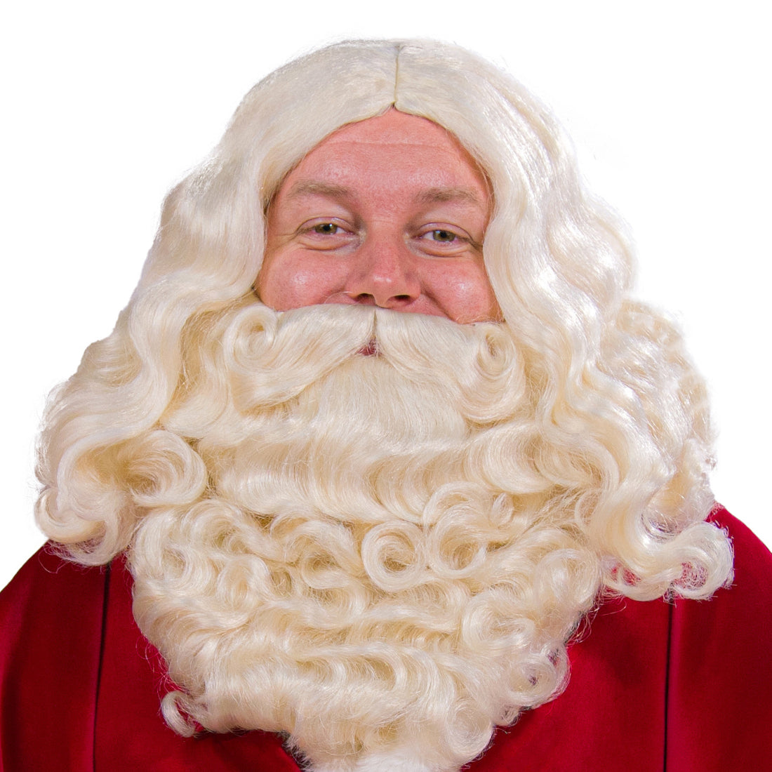 Förvandla dig till den mysigaste versionen av jultomten med detta lyxiga tomteset bestående av en fluffigt lockig peruk och ett matchande, överdådigt skägg. Den mjuka, krämvita färgen och de stora, vackra lockarna ger en äkta sagolik känsla som tar vilken julutklädnad som helst till nästa nivå.