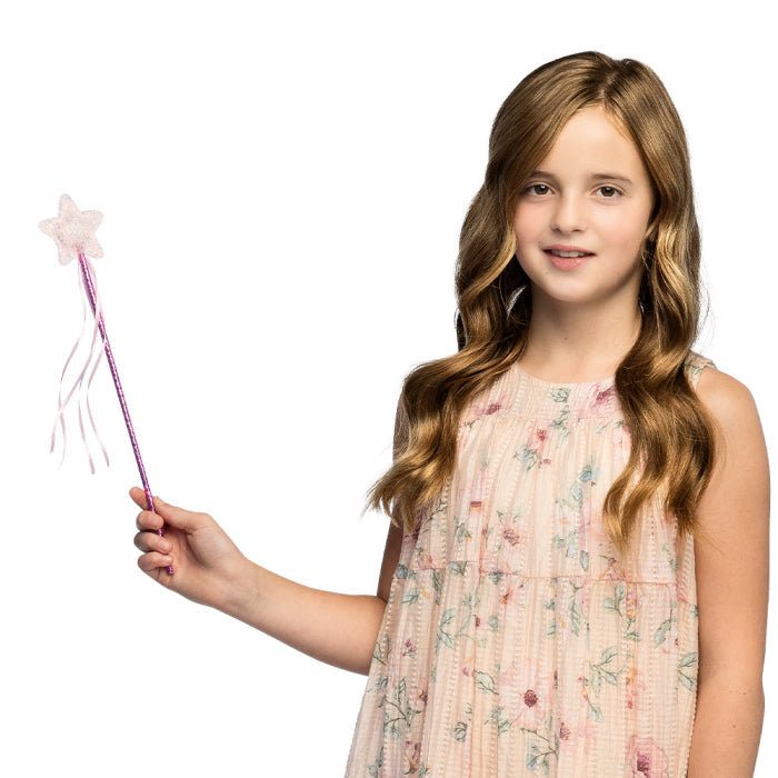 En glittrande magisk trollstav med stjärna som topp, perfekt för små feer, prinsessor och sagoväsen. Den klassiska stjärndesignen ger en fantasifull och lekfull känsla som passar utmärkt till maskerad, kalas eller lek hemma.