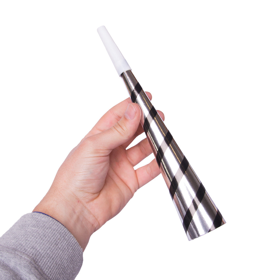 Det silvriga hornet i papper kan du förslagsvis ställa bredvid bordsplaceringskortet för att låta alla gäster komponera sin egen trudelutt. Det är den klassiska tutan med det klassiska ljudet för de klassiska festerna som bröllopet och nyårspartajet.