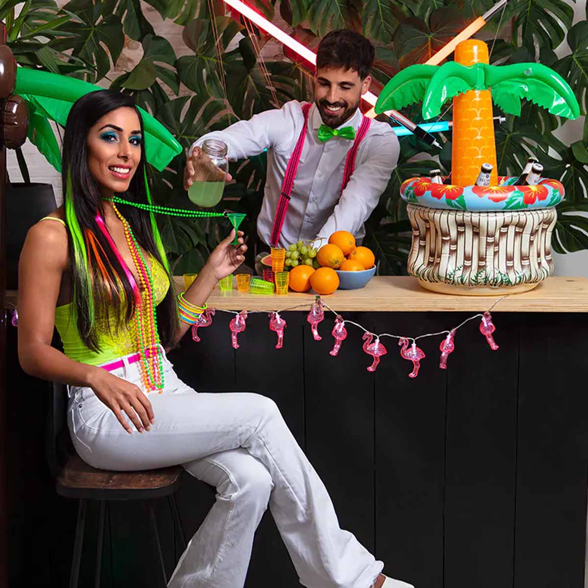 Håll dina drycker kalla och stämningen tropisk med denna uppblåsbara drinkkyl i form av en palm! Med en höjd på 62 cm är denna färgglada drinkkyl både praktisk och festlig. Perfekt för sommarfester, poolpartyn eller strandhäng – fyll den med is, vatten och dina favoritdrycker för att hålla dem svala hela dagen.