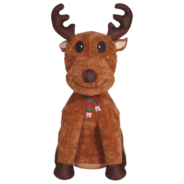 Skapa en magisk och lekfull julstämning med denna uppblåsbara ren på 183 cm! Den stora, vänliga renen har ett charmigt uttryck med stora ögon, ett brett leende och ståtliga horn. Den bär en liten julig halsduk och har en mjuk, brun design som gör den både söt och dekorativ.