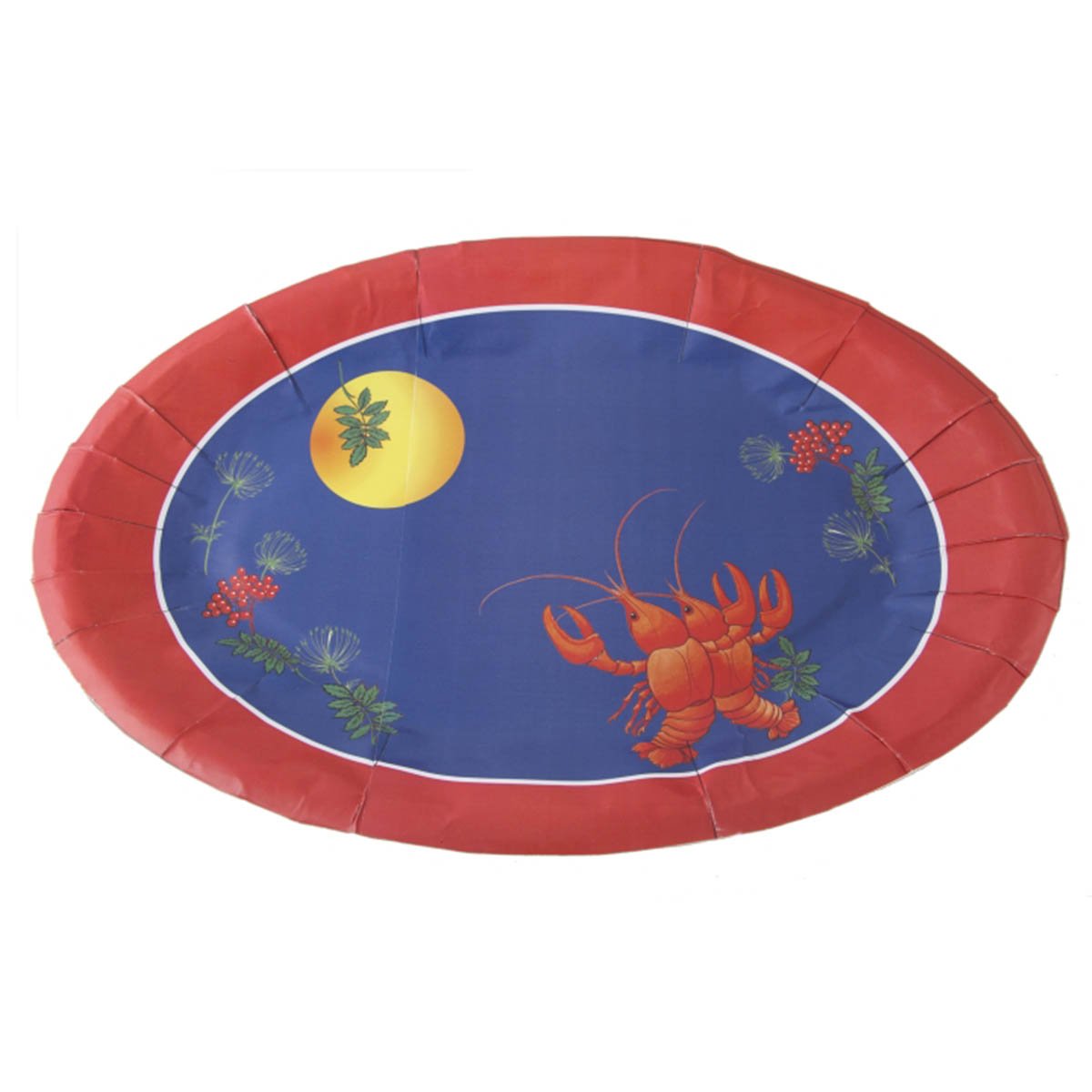 Dekorera upp din kräftskiva med snygga uppläggningsfat med kräftor på. Du får plats med många kräftor på dessa serveringsfat och du slipper att diska efteråt.