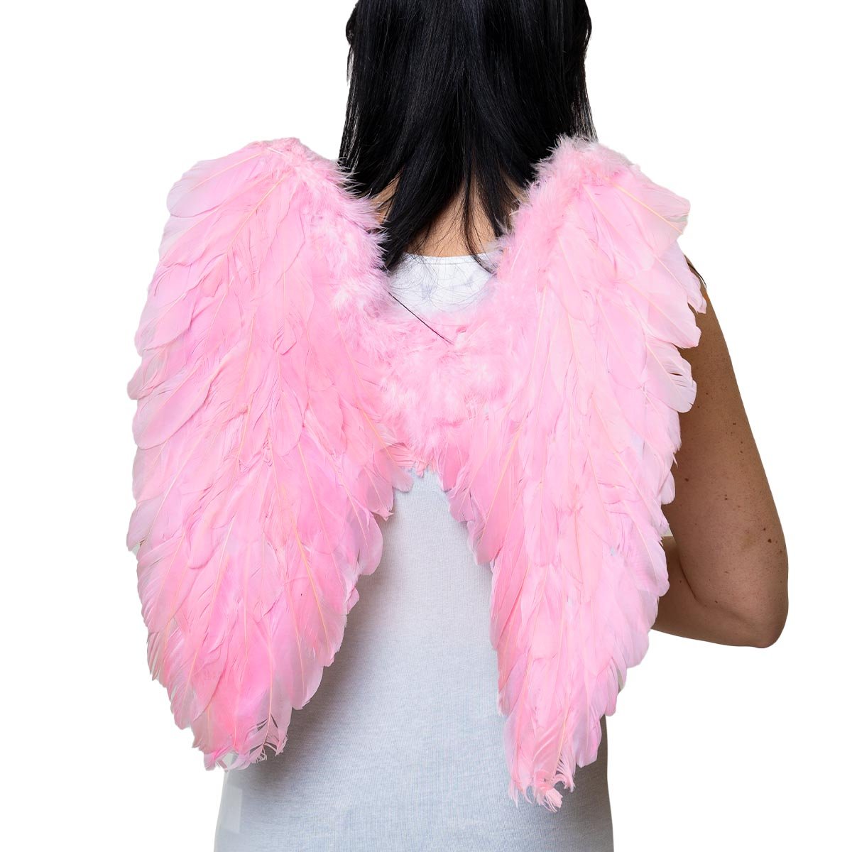 Våra änglavingar är tillverkade med äkta fjädrar och ger en elegant och förtrollande touch till din maskerad-outfit. Med en praktisk ryggsäcksdesign kan du enkelt bära dem och vara redo för festen på nolltid. Vingarna mäter 50x50 cm när vingarna är utfällda och du kommer skapa en verklig wow-effekt när du kommer inflygandes med dessa vingar. Klä ut dig till en bedårande rosa ängel och sprid en aura av förtrollning och mystik. Eller varför inte förvandla dig till en lekfull flamingo eller en majestätisk flygande enhörning?