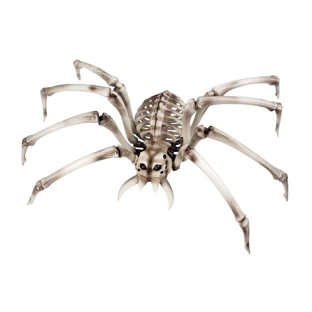 Ett stort och superläskigt spindelskelett som kan få både spindelfobier och skelettfantaster att rysa av skräck. En utmärkt halloweendekoration tillsammans med utdraget spindelnät och små spindlar som kompanjoner.