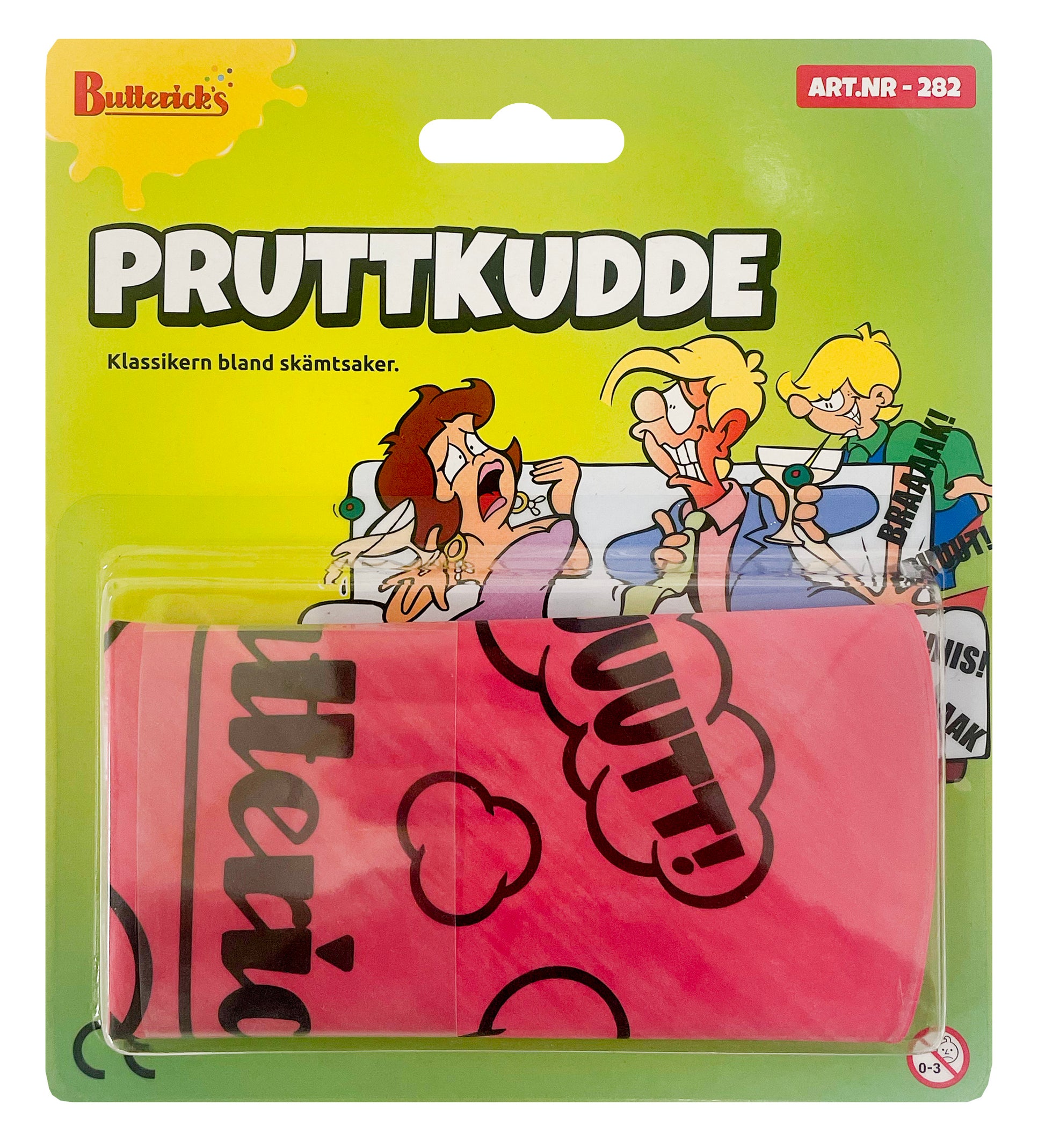 Sätt lite skratt i vardagen med den klassiska pruttkudden från Buttericks! Tillverkad sedan 1913 och fortfarande ett av de mest omtyckta skämtartiklarna. Denna ursprungliga version av pruttkudden blåses upp för hand för den mest autentiska effekten. Smussla undan kudden på en stol och vänta på att skrattet ska börja! Gjord för att hålla, denna pruttkudde är perfekt för festen, skämtet på jobbet eller bara för lite hemmaskoj. Med Buttericks pruttkudde, kommer du alltid att vara redo för en god gammaldags skrattattack!