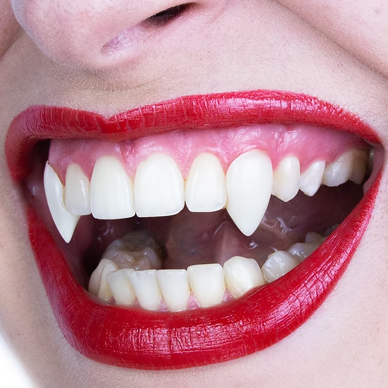 Tack vare deras deluxe design sitter dessa tänder komfortabelt och ser autentiska ut. De små men markerade fangsen ger en spännande kontrast till din vanliga look, vilket gör att du utan problem kan förvandlas till den mest charmerande - eller skrämmande - vampyren på festen.