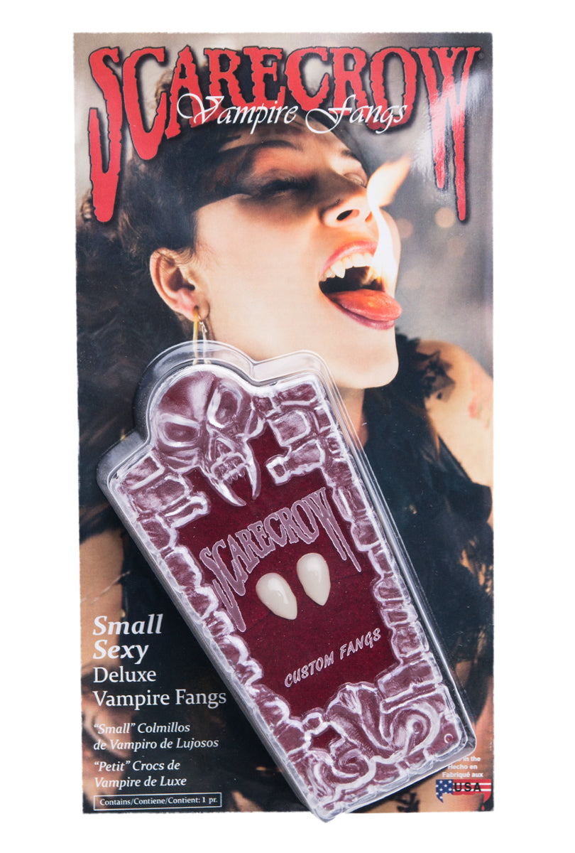 Skapa den mest övertygande vampyrlooken med Scarecrow Fangs små deluxe tänder! Med en perfekt balans mellan subtilitet och effektivitet ger dessa fangs en naturligt skrämmande finish till din dräkt.