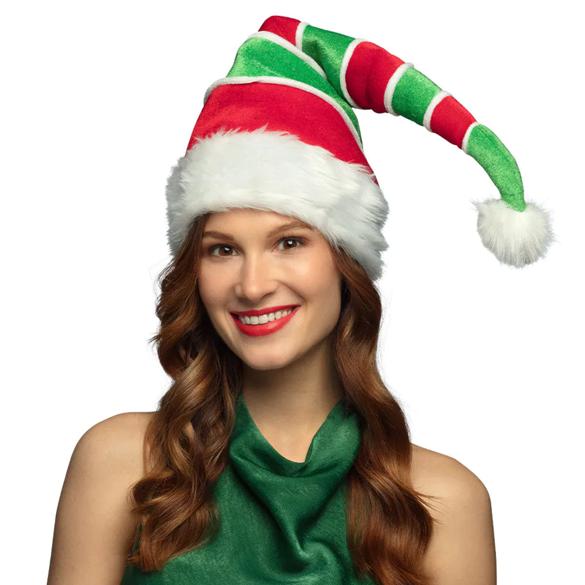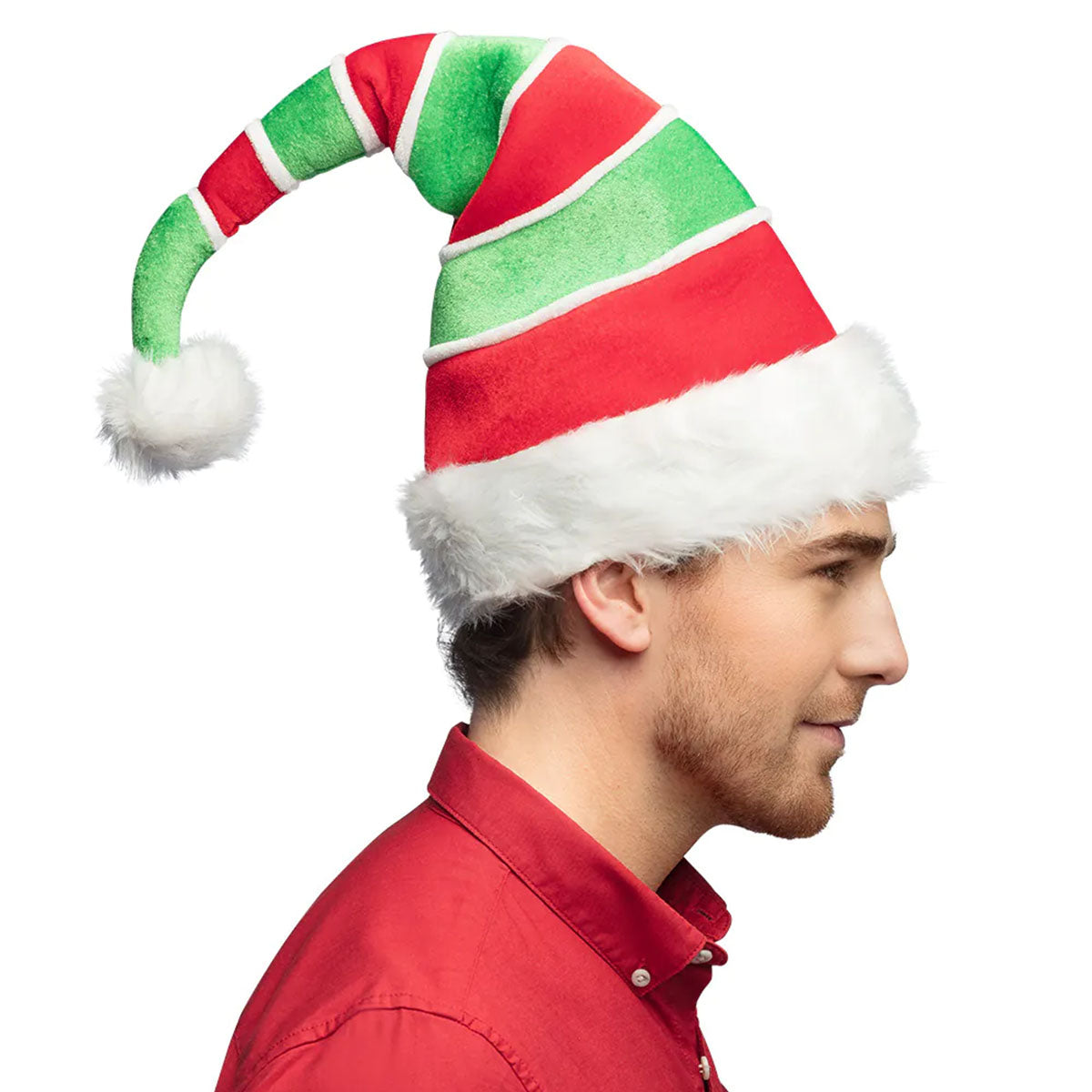 Skapa den perfekta julstämningen med denna färgsprakande tomteluva i röd och grön design! Den klassiska tomteluvan har fått en modern twist med livfulla ränder som garanterat drar blickarna till sig på julfesten, luciatåget eller vid julklappsutdelningen. Med en mjuk, pälsliknande kant och en fluffig tofs är den både bekväm och stilren – idealisk för både långa och korta jultillställningar. Luvan är tillverkad i ett lätt material som gör att den sitter skönt hela kvällen, utan att du blir för varm. Ett måste för dig som vill sprida glädje och charm med en touch av humor och kreativitet.