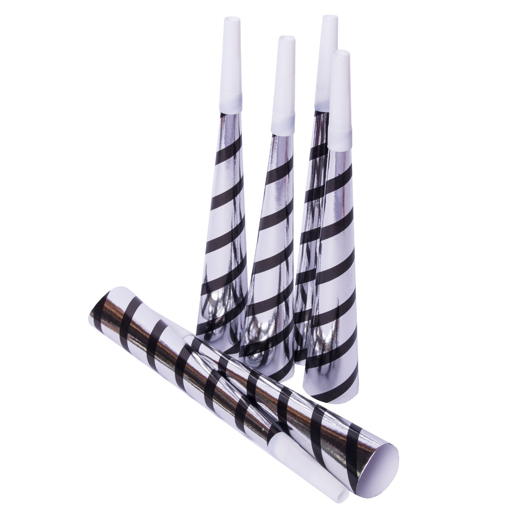 Det silvriga hornet i papper kan du förslagsvis ställa bredvid bordsplaceringskortet för att låta alla gäster komponera sin egen trudelutt. Det är den klassiska tutan med det klassiska ljudet för de klassiska festerna som bröllopet och nyårspartajet.