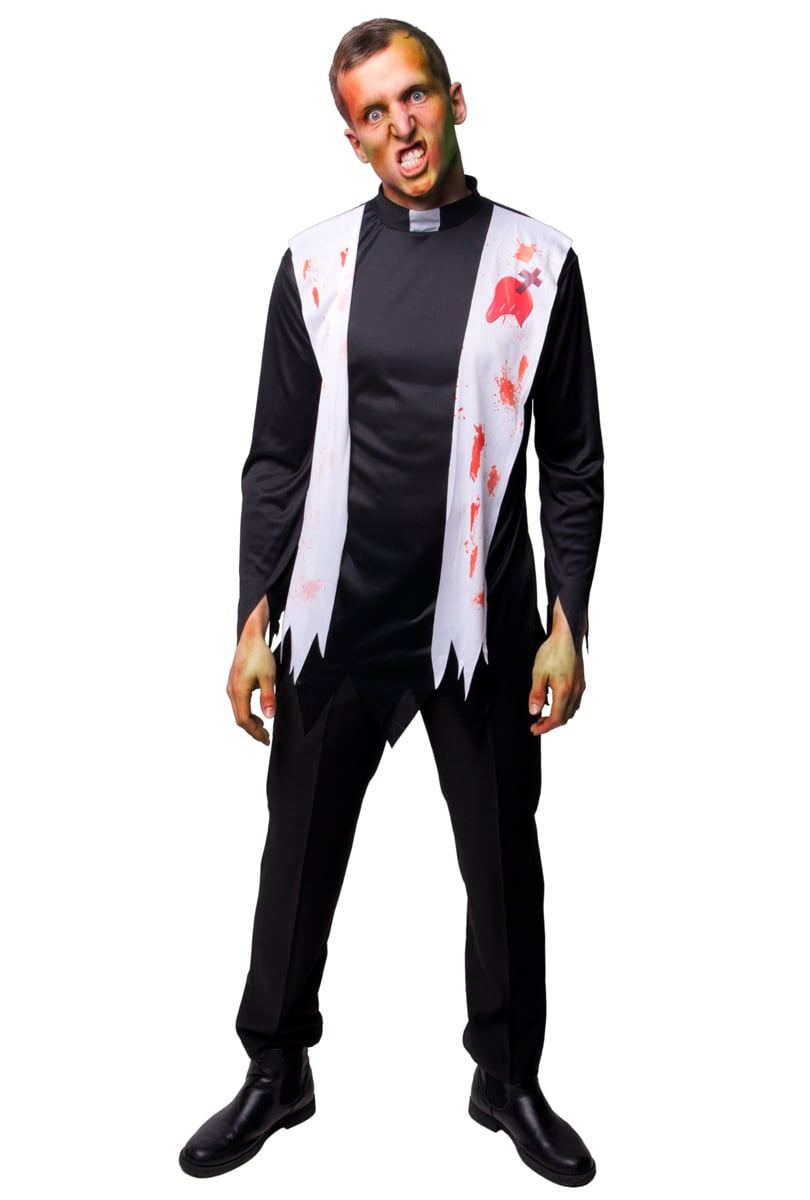Denna snygga zombiepräst maskeraddräkten gör att du snabbt kan förvandlas till en blodig präst utan att du behöver ta på blod på kläderna. Det mjuka tyget gör att den är skön att ha den på sig länge och man blir inte för varm i den.